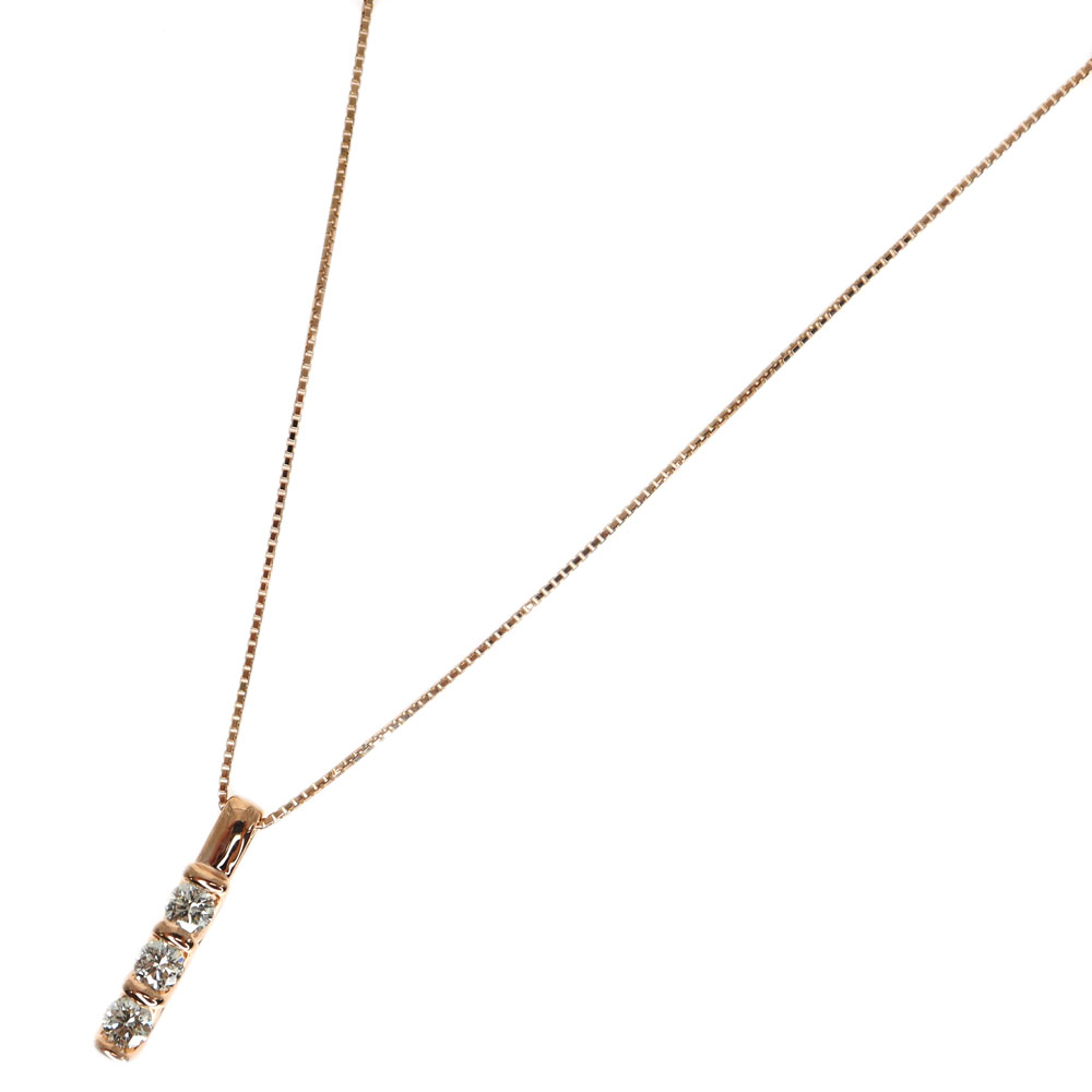 K18PG ピンクゴールド D0.27ct D0.12ct ダイヤモンド ネックレス 【中古】