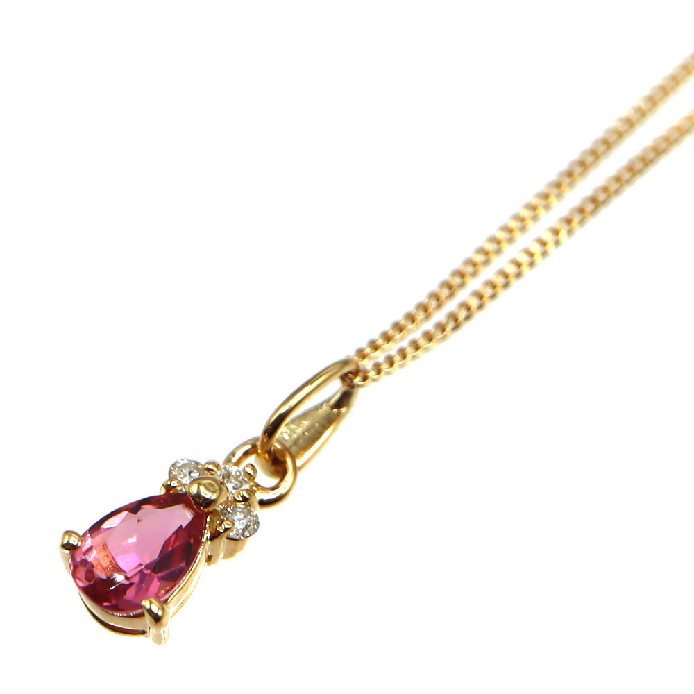 18金 K18 ピンクトルマリン D0.04ctネックレス ゴールド ダイヤモンド レディース【中古】