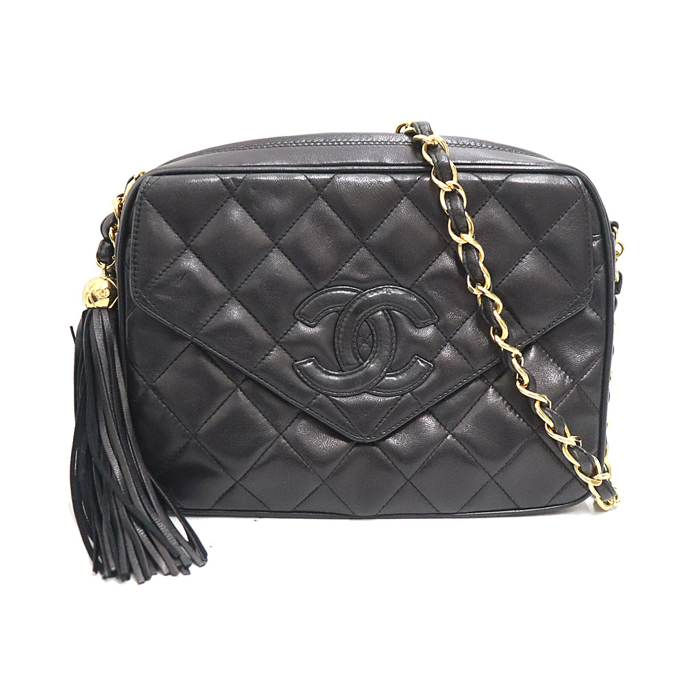 シャネル Chanel フリンジ ショルダーバッグ レディース ラムレザー ブラック【中古】