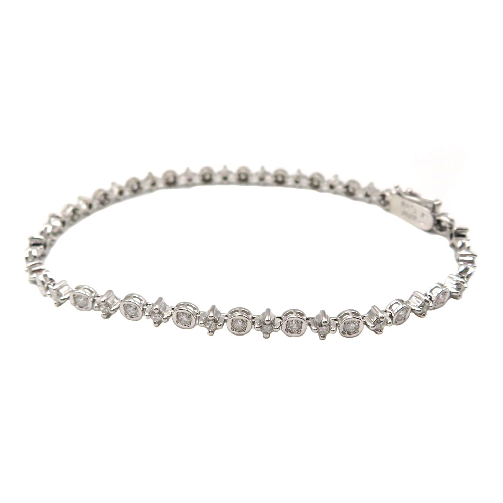 K18WG ホワイトゴールド D1.50ct ダイヤモンド テニスブレスレット レディース ジュエリー アクセサリー 【中古】