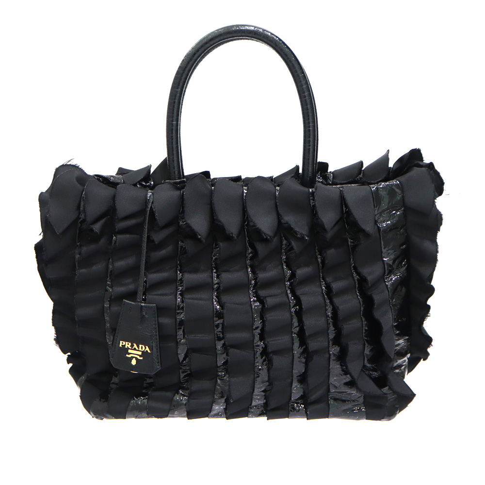 プラダ Prada BN1728 フリルハンドバッグ ナイロン エナメル ブラック レディース【中古】