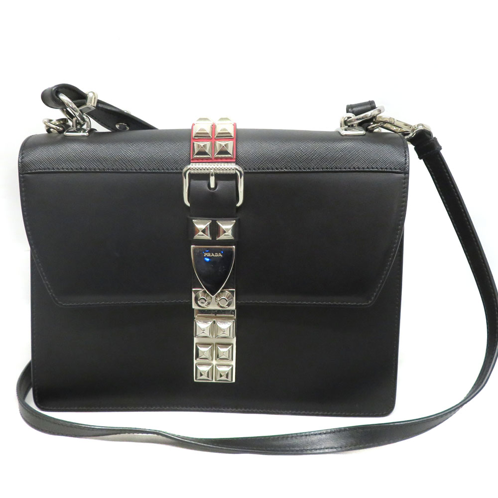 プラダ Prada 1BA179 ショルダーバッグ スタッズ ブラック 2WAY 【中古】
