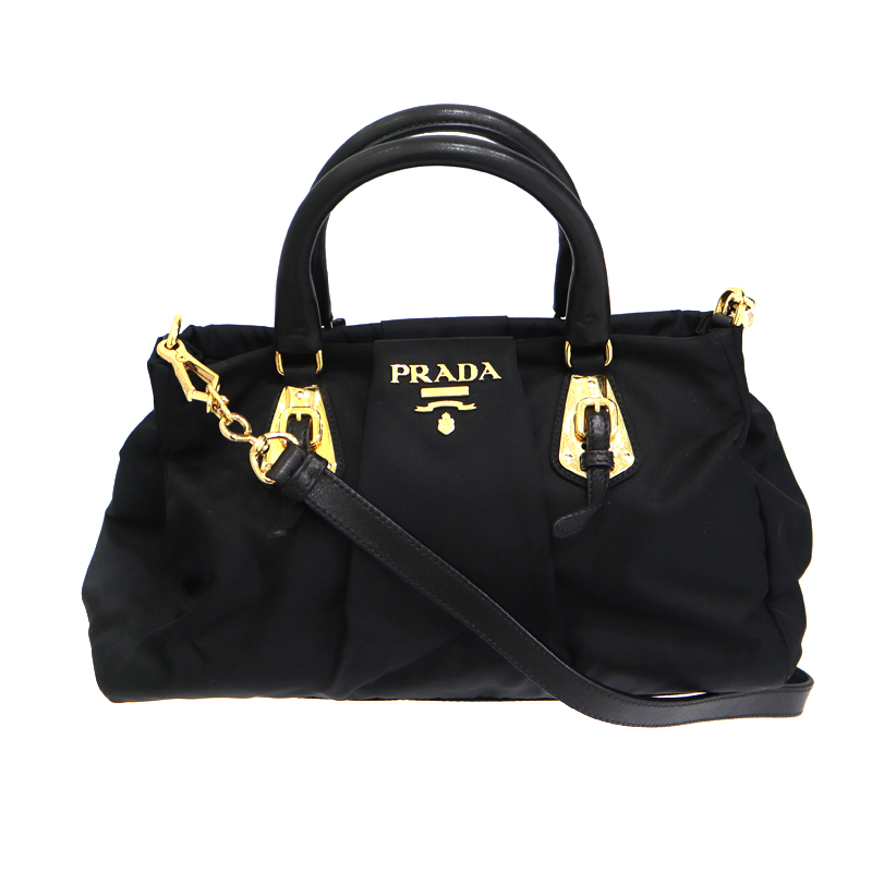 プラダ Prada 1BG308 2WAYバッグ ナイロン ブラック ゴールド金具 ショルダーバッグ ハンドバッグ 【中古】