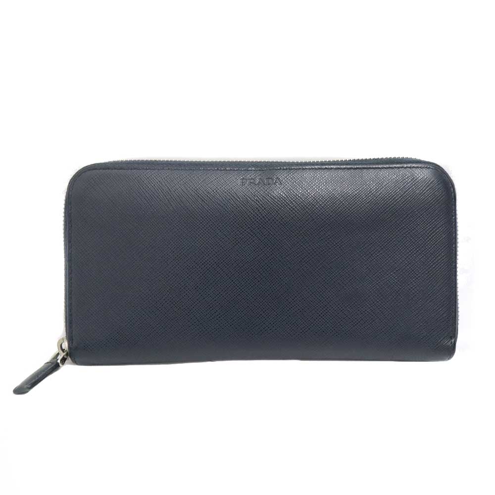 プラダ Prada 2ML317 ラウンドファスナー 財布 メンズ レザー ネイビー【中古】