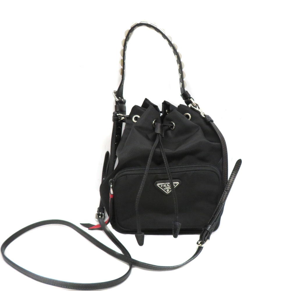 プラダ Prada 1BH038 デュエットバケットバッグ ナイロン レザー ブラック 【中古】