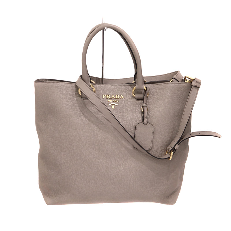 プラダ Prada 1BG865 2WAYトートバッグ ショルダーバッグ トートバッグ グレー レザー 鞄【中古】