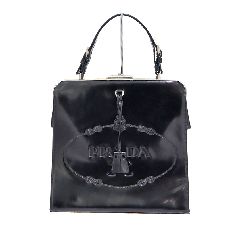 プラダ Prada BN1099 エンボスロゴハンドバッグ エナメル ブラック レディース ハンドバッグ【中古】