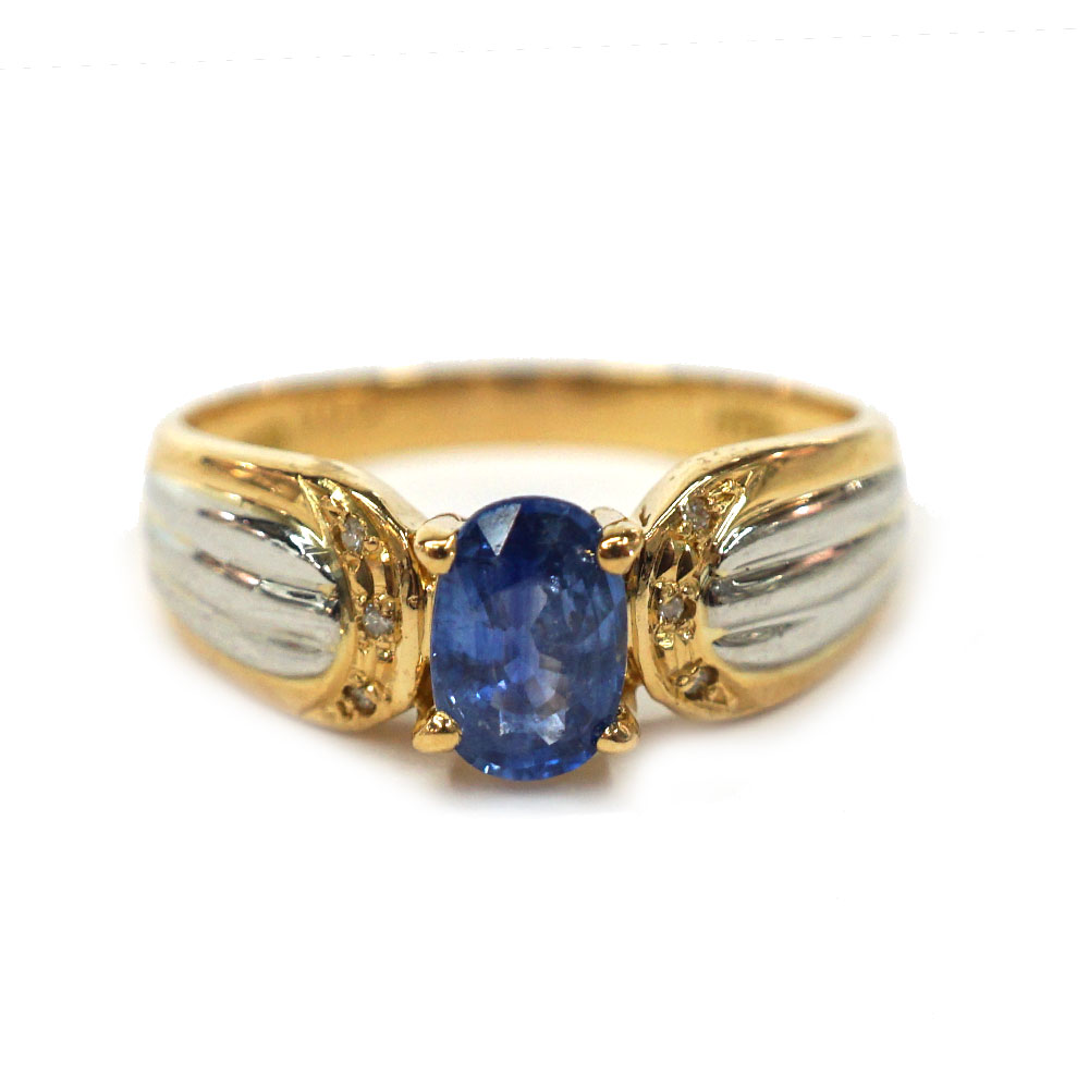 K18 Pt900 18金 プラチナ イエローゴールド リング 指輪 サファイア1.08ct ダイヤモンド0.08ct 【中古】