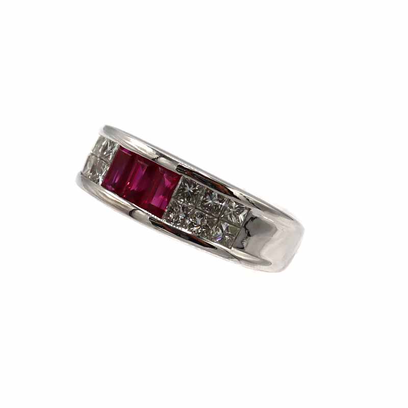 Pt900 プラチナ900 ダイヤモンド ルビー リング 指輪 レディース シルバーカラー【中古】