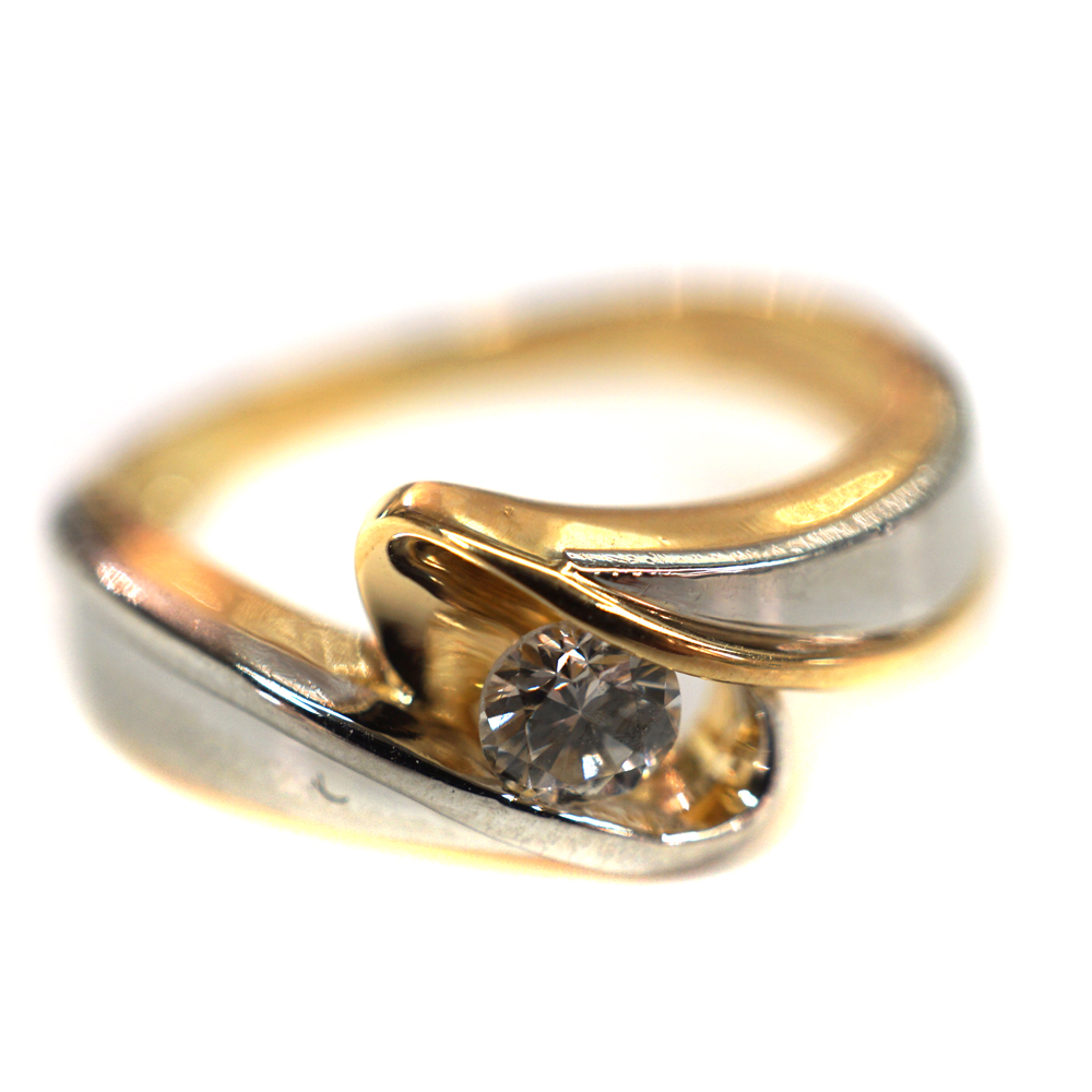 K18 Pt900 ゴールド プラチナ D0.03ct リング ダイヤモンド コンビ ジュエリー アクセサリー 【中古】
