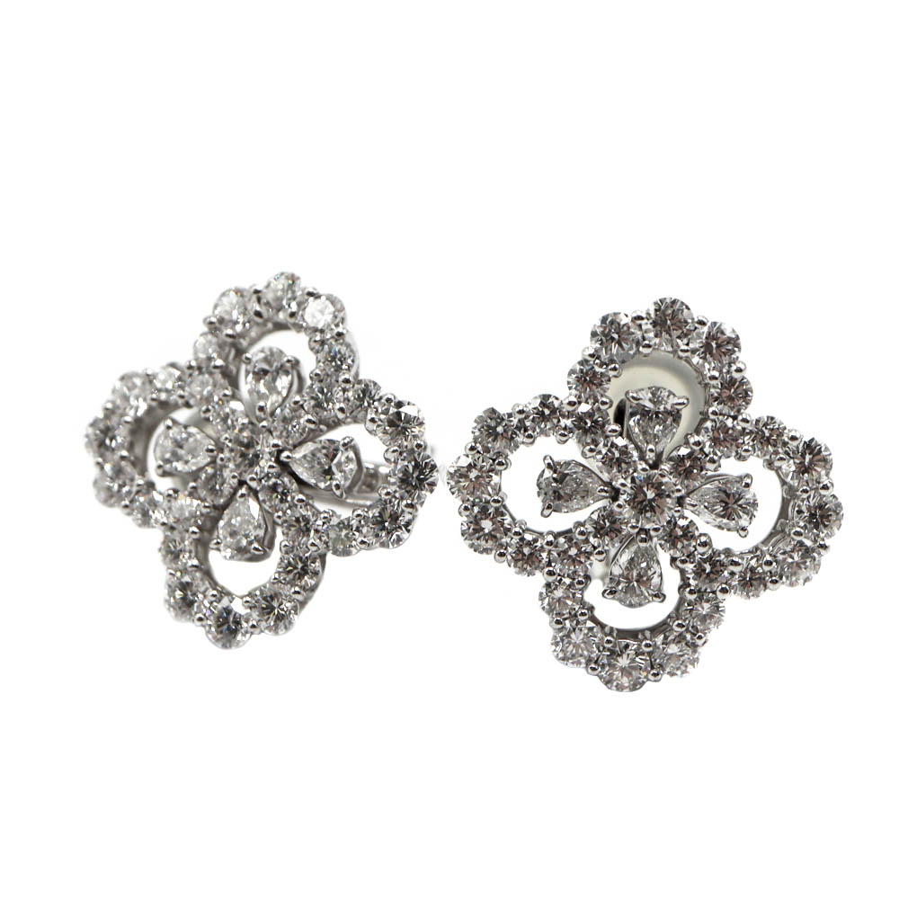 K14WG 14金ホワイトゴールド Pt950 プラチナ フラワーモチーフ ダイヤモンド ピアス レディース ジュエリー アクセサリー 【中古】