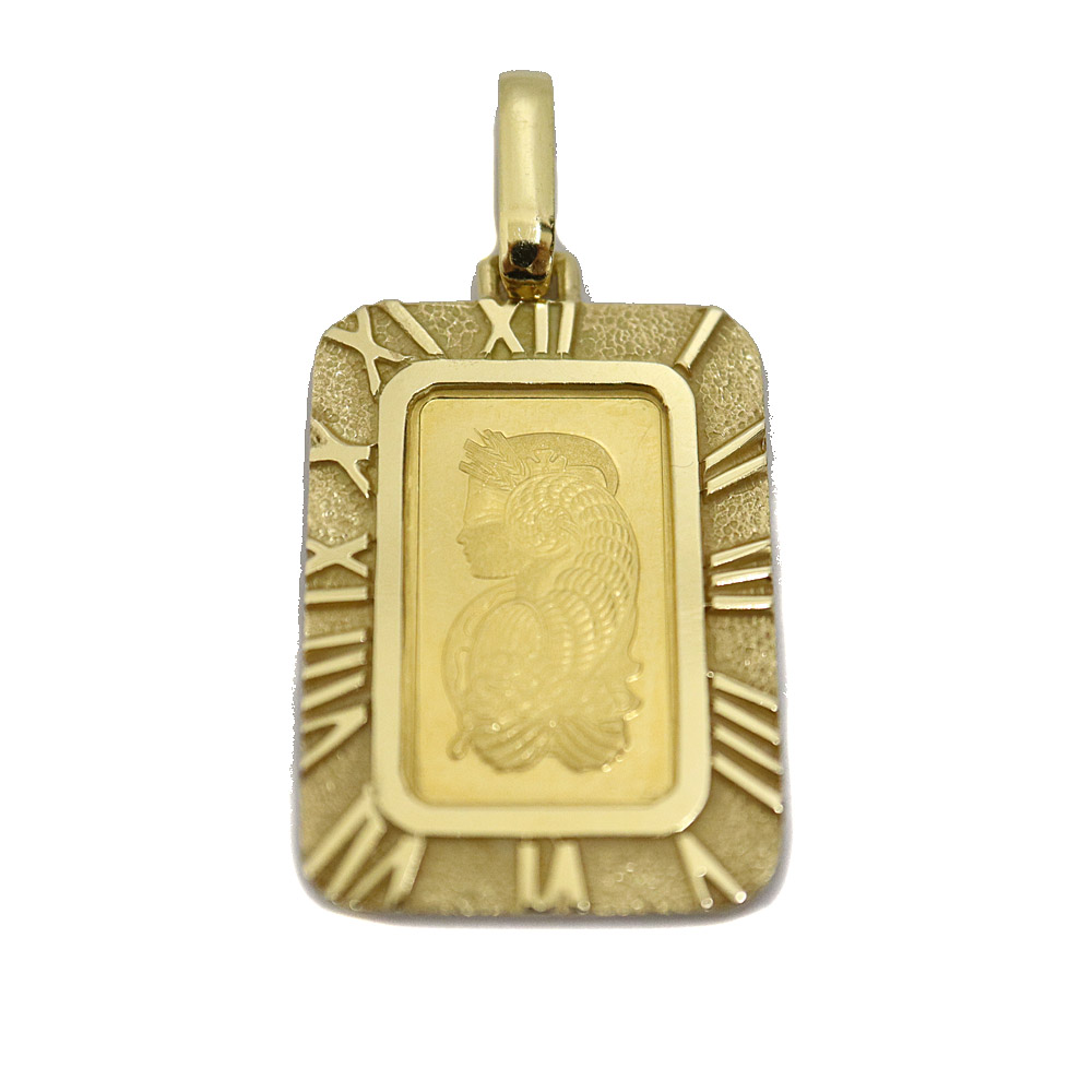24金 K18YG 18金枠 1gミニバー付ペンダントトップ レディース メンズ ゴールド【中古】