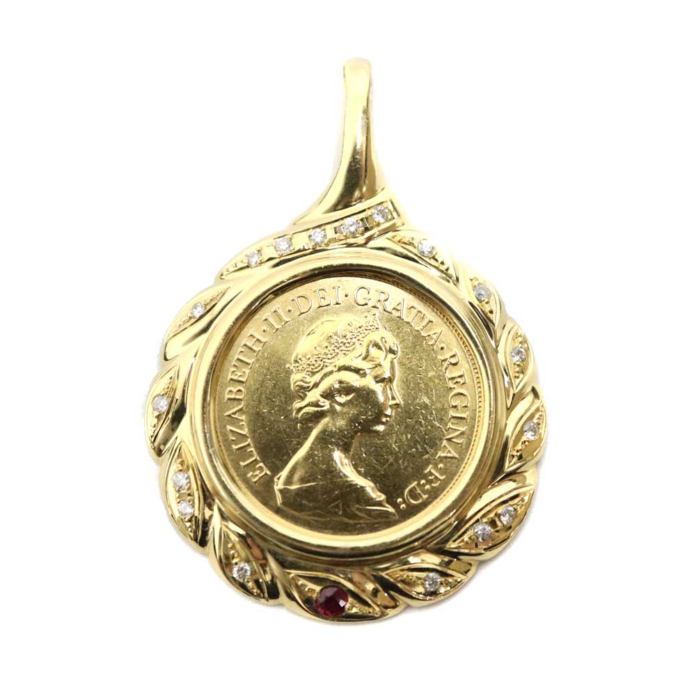 K22/K18 22金/18金 ソブリンコイントップ ペンダントトップ イエローゴールド ダイヤモンド ルビー ユニセックス【中古】