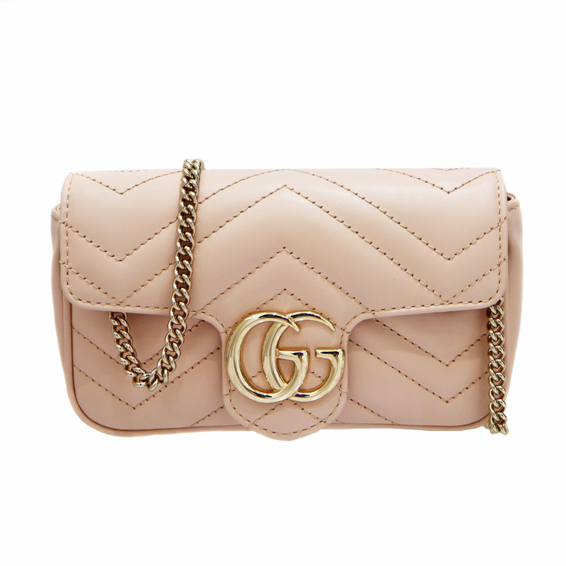 グッチ Gucci 476433 GGマーモント スーパーミニバッグ ショルダーバッグ レザー レディース ピンク 【中古】