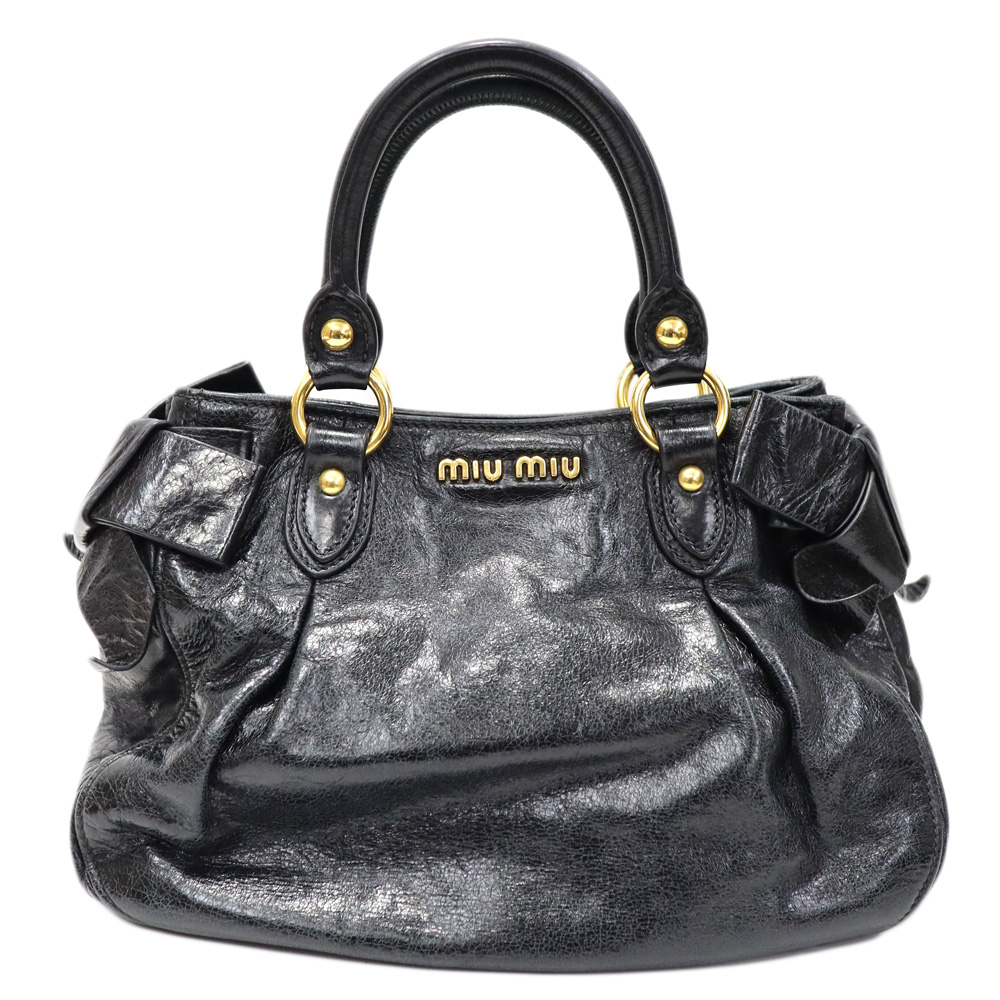 ミュウミュウ Miumiu ハンドバッグ レディース レザー ブラック【中古】