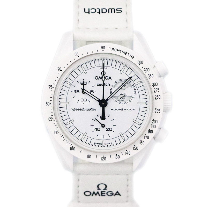 スウォッチ Swatch オメガ×スウォッチ SO33W700 ムーンスウォッチ ミッション トゥ ムーンフェイズ フルムーン スヌーピー ホワイト 【中古】