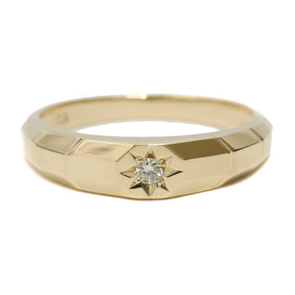 K18 18金 イエローゴールド ダイヤモンド0.10ct 印台 リング アクセサリー 指輪【中古】