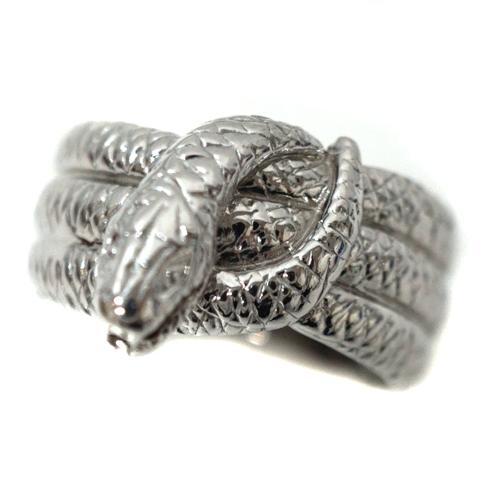 K18WG ホワイトゴールド ヘビモチーフリング メンズ レディース ジュエリー アクセサリー 男女兼用 ユニセックス 【中古】