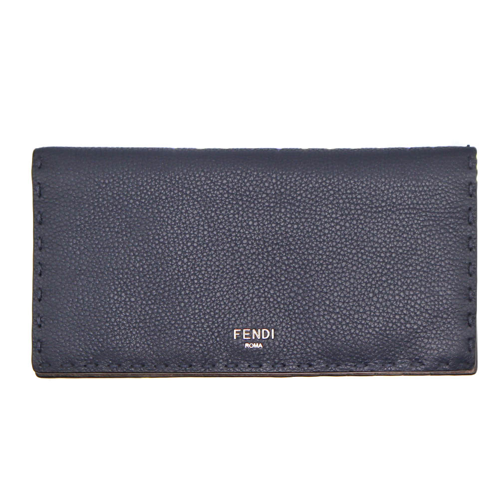 フェンディ Fendi 7M0355 セリレア ファスナー付き長財布 ネイビー レザー メンズ【中古】