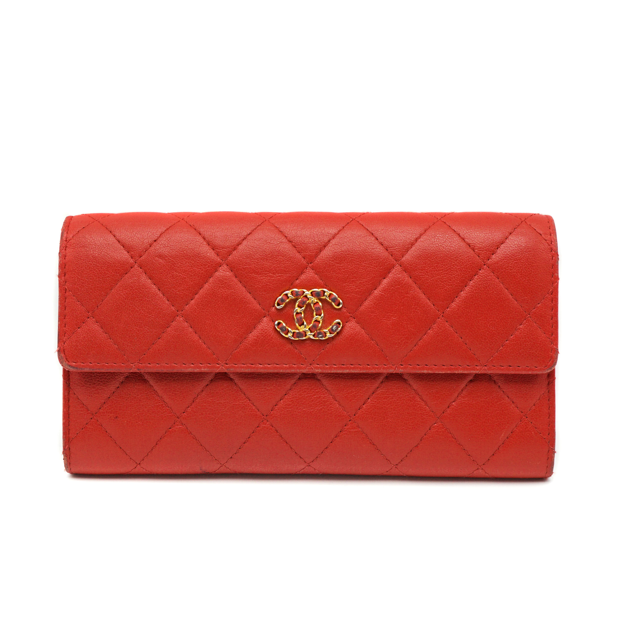 シャネル CHANEL マトラッセ/ロングフラップウォレット ラムスキン レディース 長財布 赤 レッド 【中古】