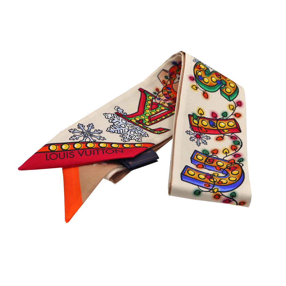 ルイヴィトン Louisvuitton M97339 バンドーBBヴィヴィエンヌウインターセレブレーション スカーフ シルク ベージュ 【中古】