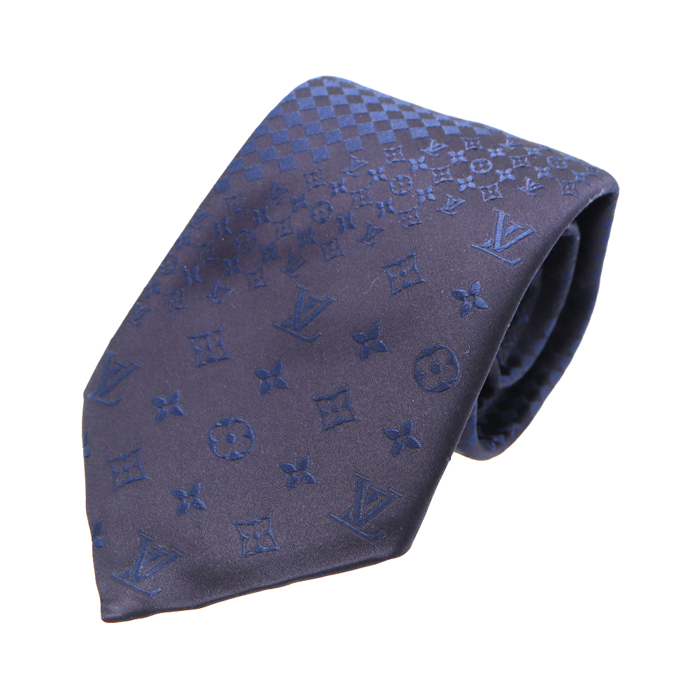 ルイヴィトン Louis vuitton M73593 クラヴァットミックスモノグラム ネクタイ シルク ネイビー【中古】