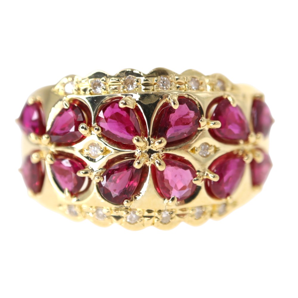 K18YG 18金 ルビー デザインリング レディース イエローゴールド 指輪 ジュエリー【中古】