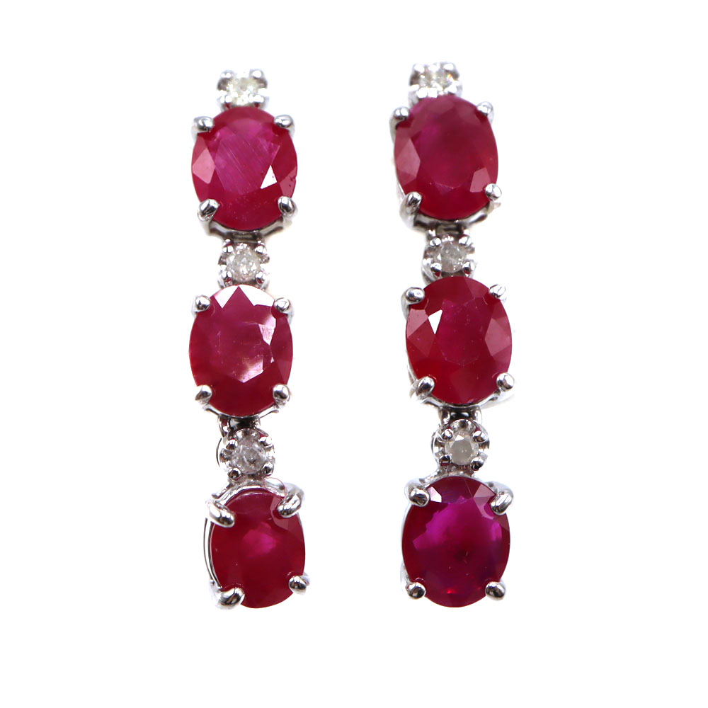 ホワイトゴールド K14WG ルビー付ピアス ルビー レディース【中古】