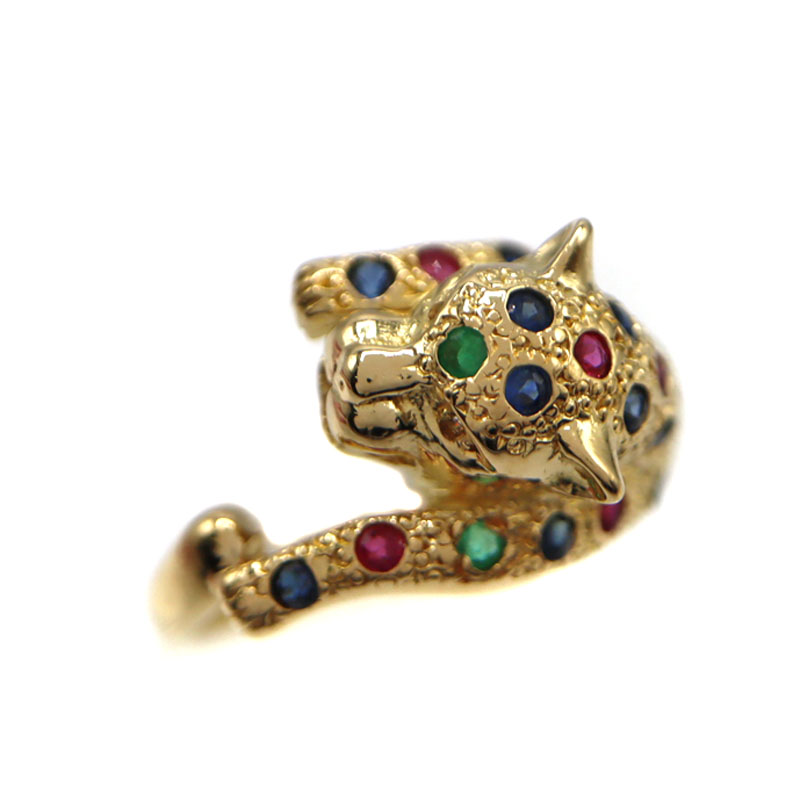 K18 18金 ルビー サファイア エメラルド パンサーリング 指輪 ジュエリー レディース【中古】