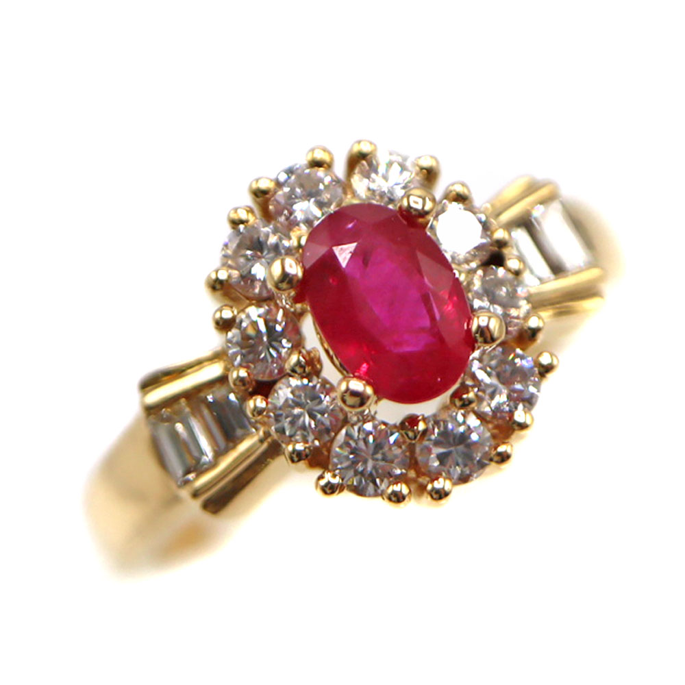 K18 ゴールド R1.06ct/D0.37ctリング ルビー ダイヤモンド ジュエリー アクセサリー 【中古】