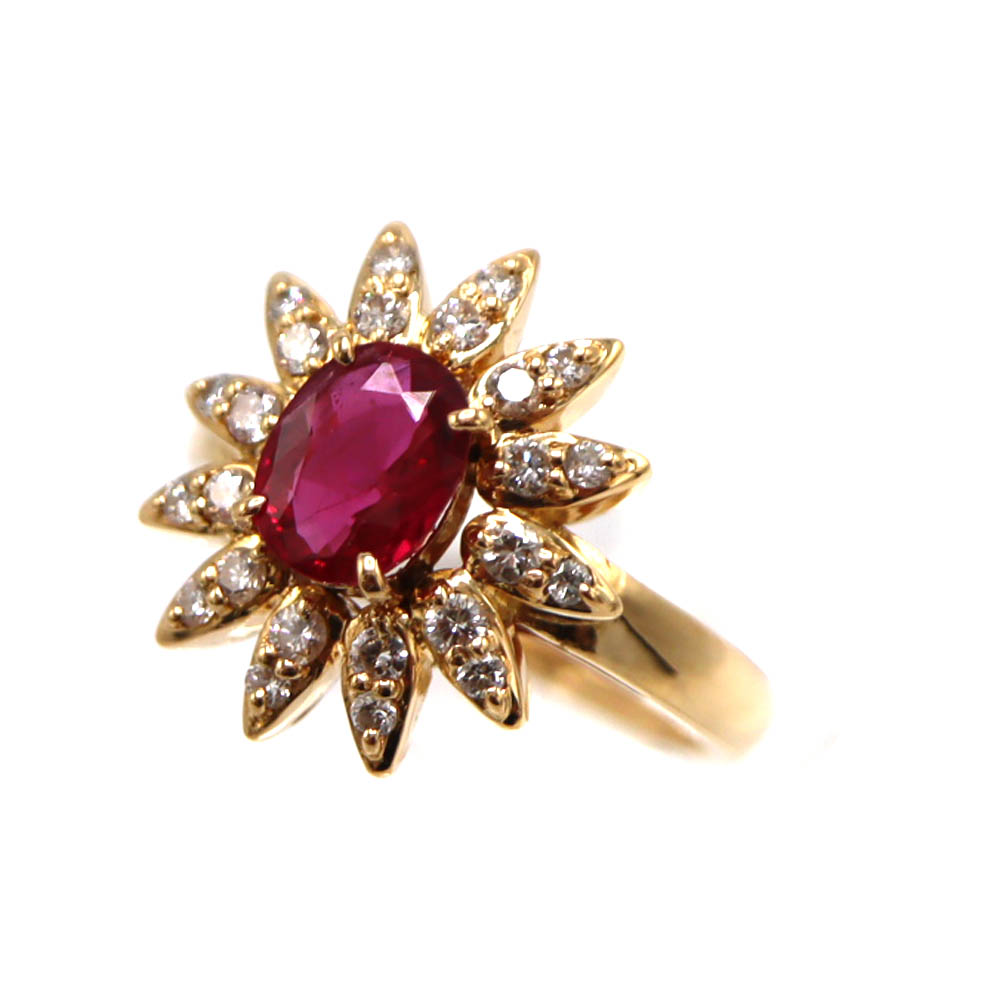 K18 18金 R1.35ct D0.35ct ルビー ダイヤモンド リング 指輪 ジュエリー レディース【中古】
