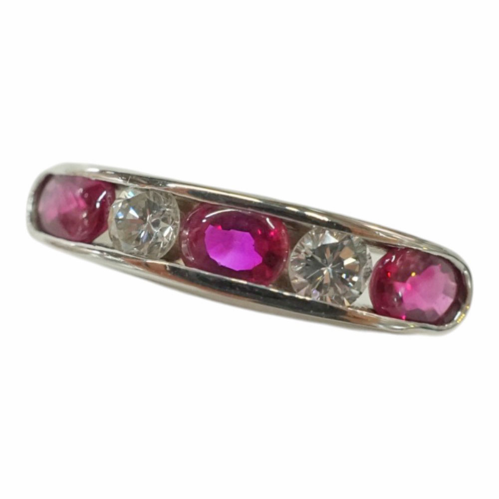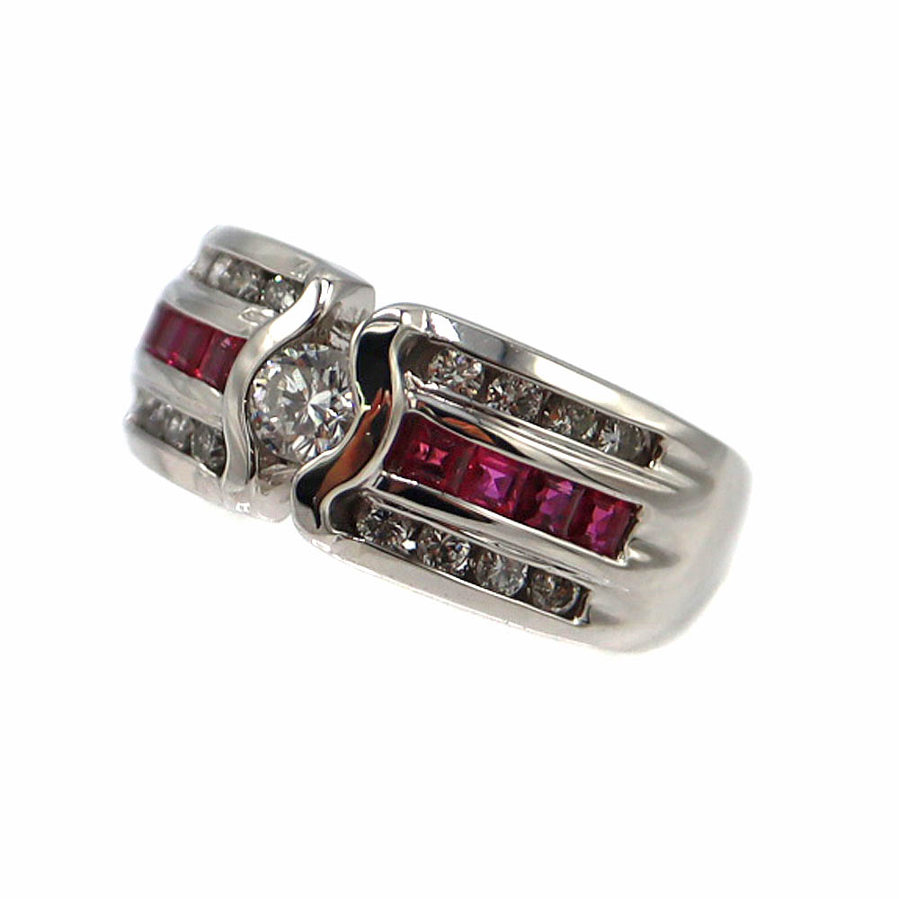 Pt900 プラチナ900 ルビー ダイヤモンド リング レディース シルバーカラー【中古】