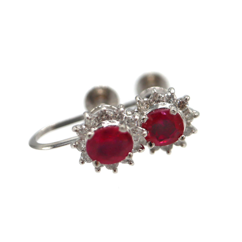 プラチナ900 Pt900 ルビー D0.18ct イヤリング ダイヤモンド ホワイトゴールド レディース【中古】
