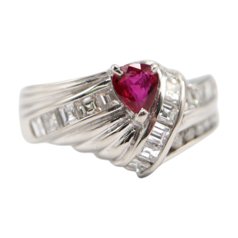 Pt900 プラチナ900 ルビー ダイヤモンド リング レディース シルバー レッド【中古】