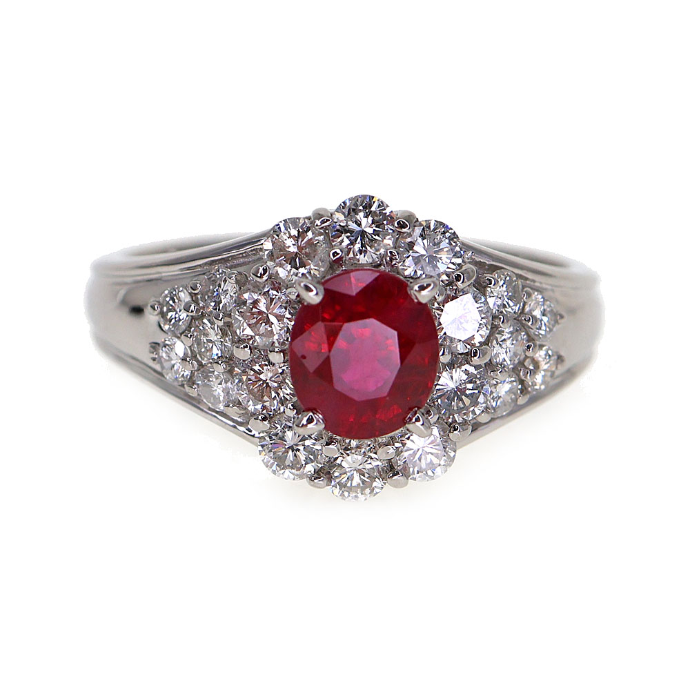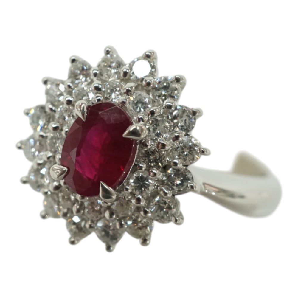 Pt850 プラチナ リング 指輪 ルビー0.63ct ダイヤモンド0.54ct【中古】