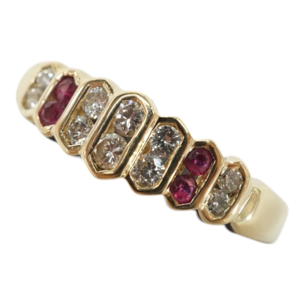 K18 18金 リング アクセサリー 指輪 ダイヤモンド0.11ct ルビー0.36ct【中古】