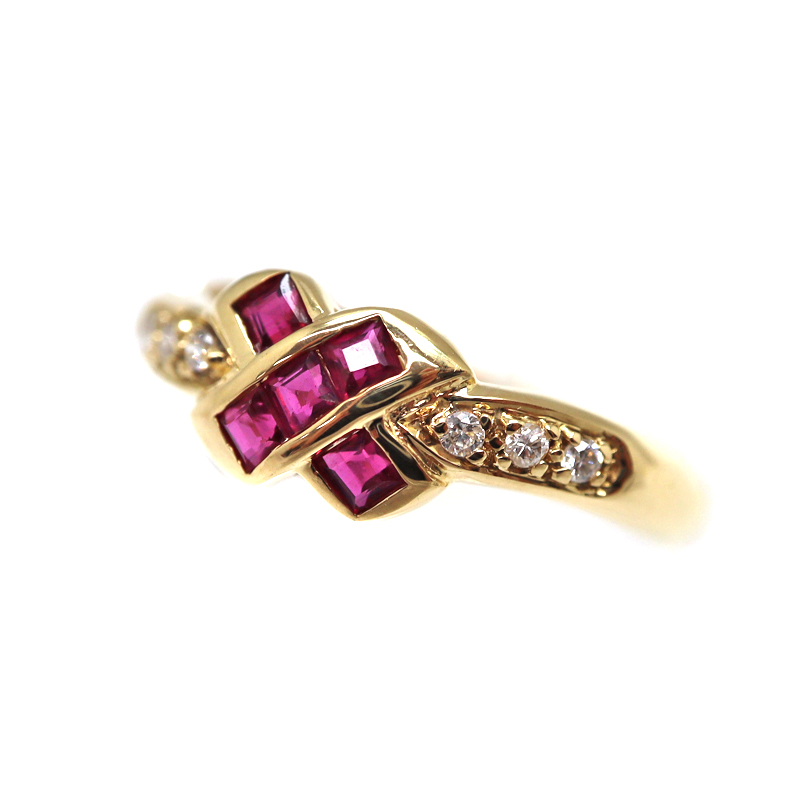 K18 18金 R0.12ct D0.48ct ルビー ダイヤモンド リング 指輪 ジュエリー レディース【中古】