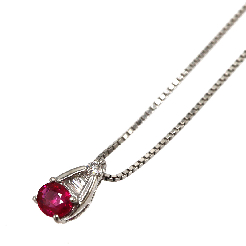 プラチナ850 Pt850 プラチナ900 Pt900 R0.58ct/D0.17ctネックレス ダイヤモンド ルビー ネックレス ジュエリー レディース【中古】