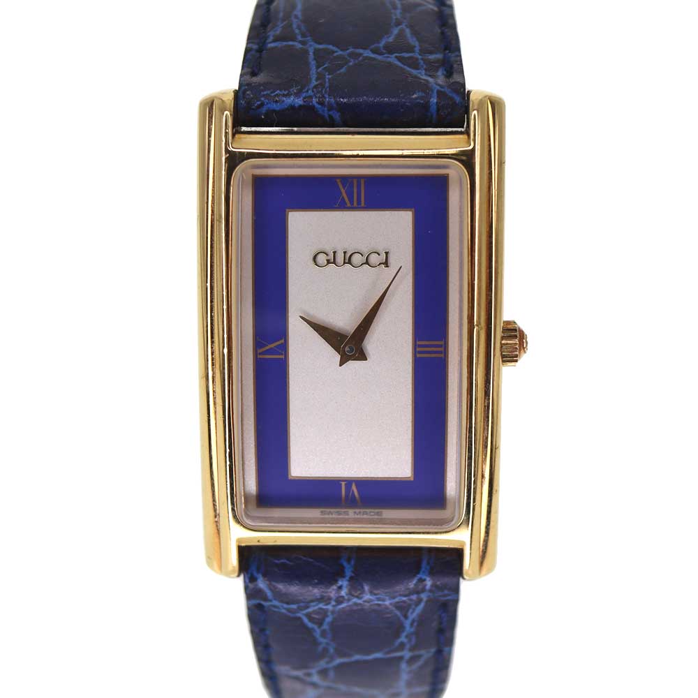 グッチ Gucci 2600M レクタンギュラー メンズ クオーツ 腕時計 ホワイト×ブルー 【中古】