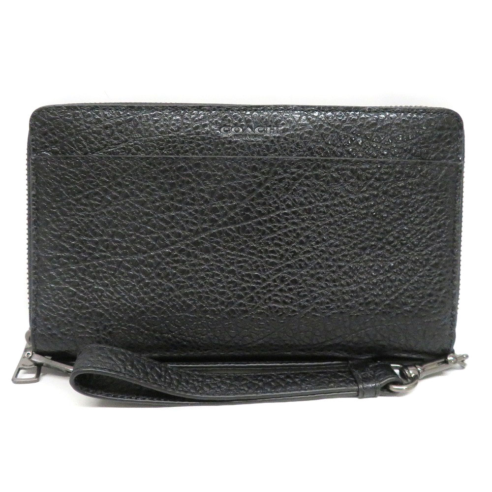 コーチ Coach F67624 ダブルジップトラベルオーガナイザー ハンドバッグ 財布 ブラック レザー 【中古】
