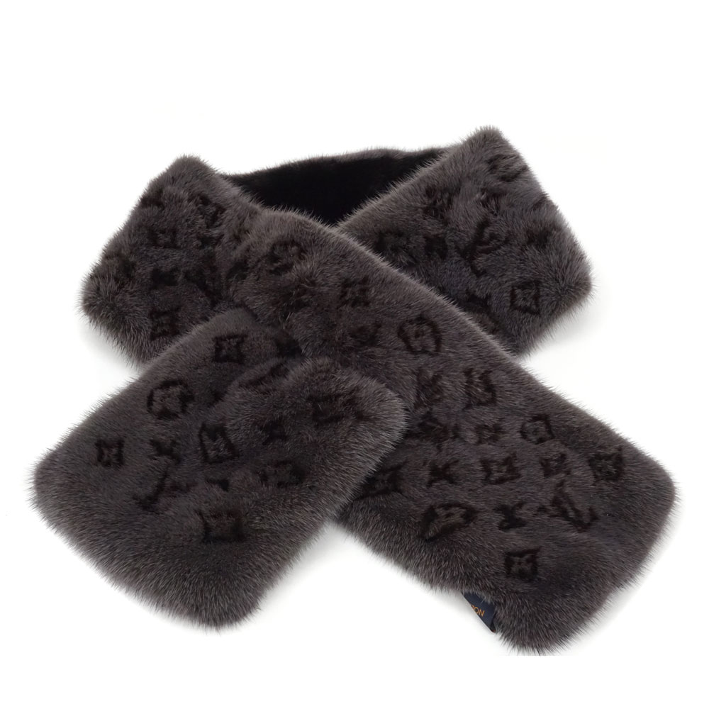 ルイヴィトン Louisvuitton M75891 マフラー・モノグラムリバース グレー ブラック ミンク【中古】