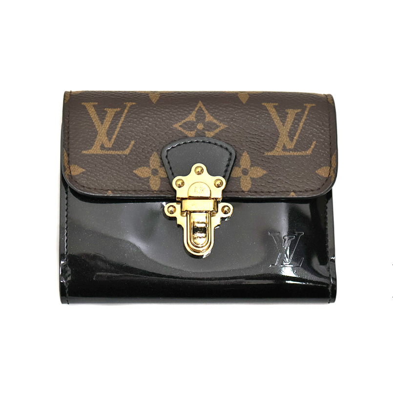 ルイヴィトン Louis Vuitton M61912 ポルトフォイユ チェリーウッドコンパクト 2つ折り財布 レディース PVC パテントレザー ブラック【中古】