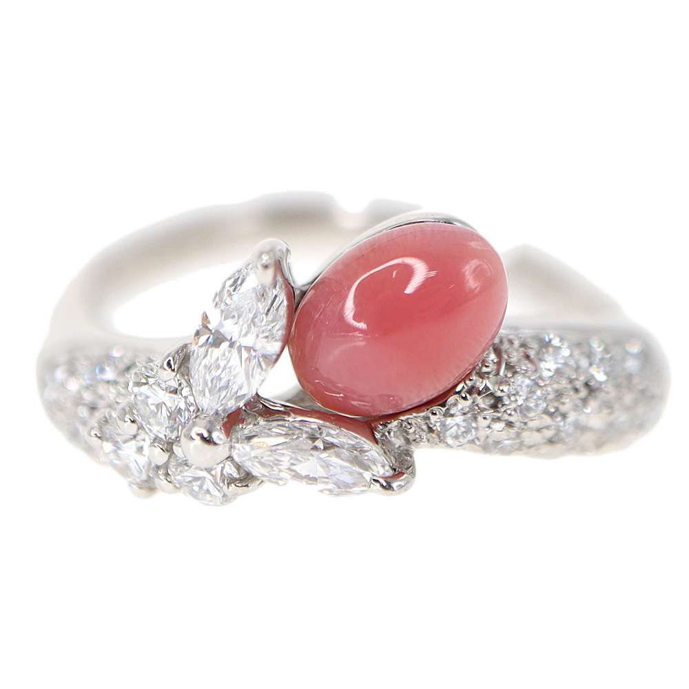 Pt900 プラチナ900 コンクパール ダイヤモンド リング レディース シルバー系/ピンク系【中古】