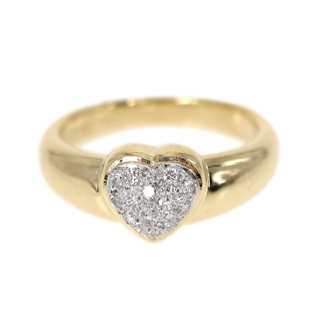 K18/Pt900 YG ダイヤモンド ハートデザインリング レディース 9号【中古】