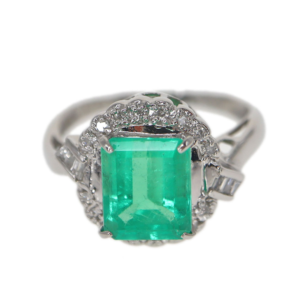 プラチナ900 Pt900 エメラルド ダイヤモンドリング コロンビア産 約13号 レディース 【中古】