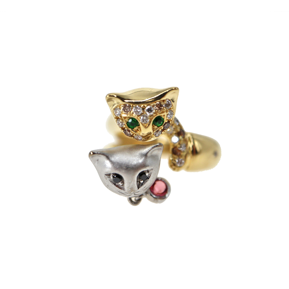 K18 18金 K18WG 18ホワイトゴールド グリーンガーネット ダイヤモンド ピンクトルマリン リング レディース ゴールド【中古】