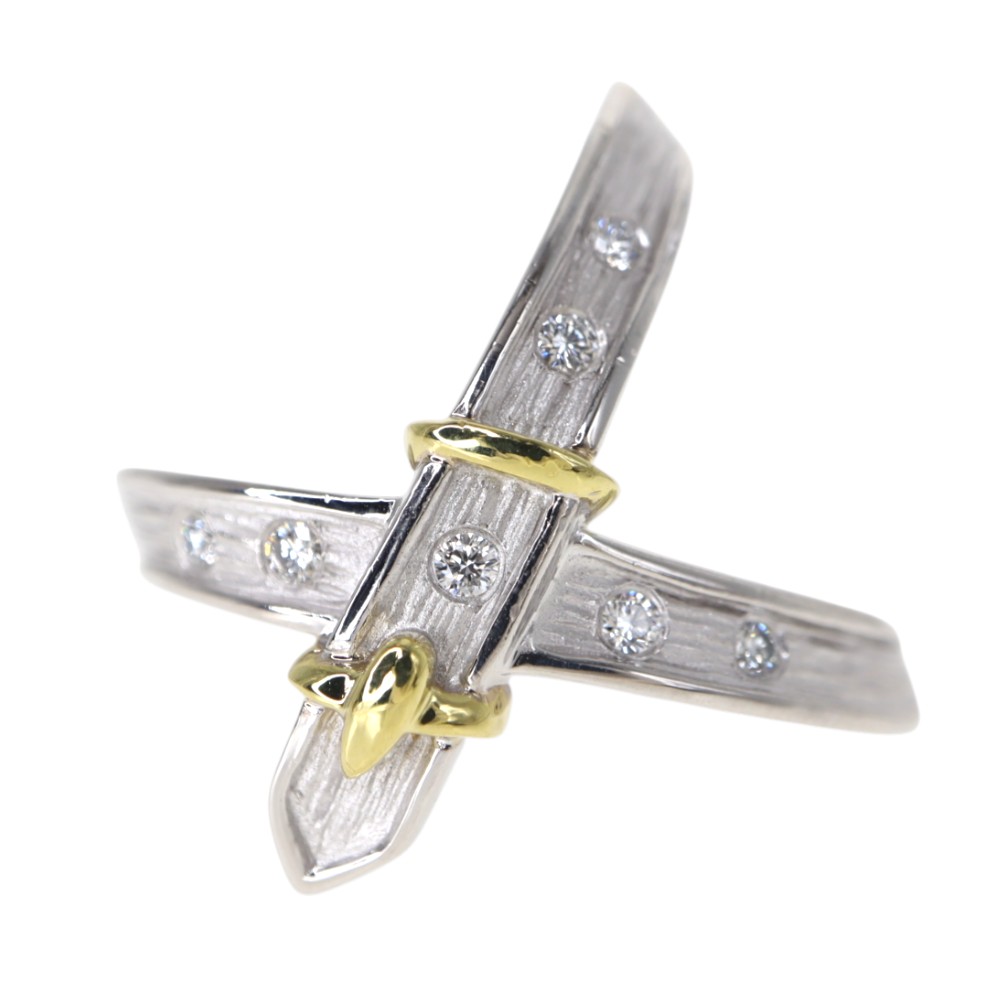 K18WG K18YG18金ホワイトゴールド イエローゴールド ダイヤモンド リング レディース【中古】