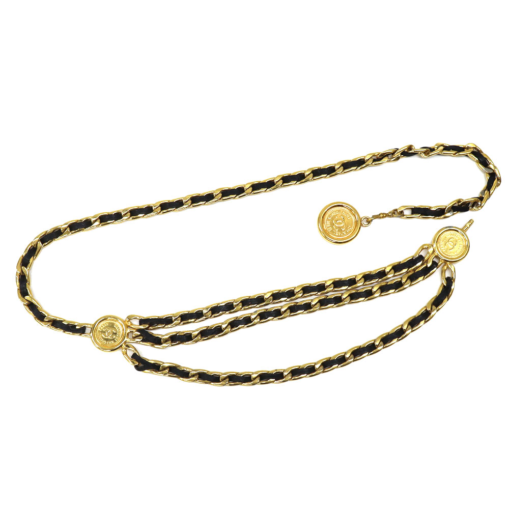 シャネル Chanel チェーン ベルト レザー レディース ゴールド×ブラック【中古】