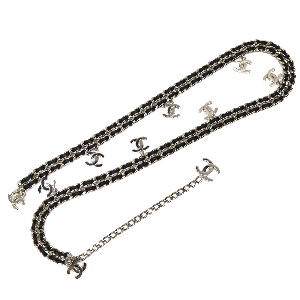 シャネル Chanel チェーン ベルト レザー レディース シルバー【中古】