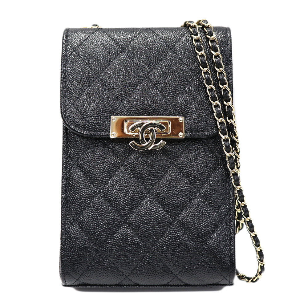 シャネル Chanel A84501 チェーンクラッチフォンケース レディース キャビアスキン ブラック×ゴールド金具【中古】